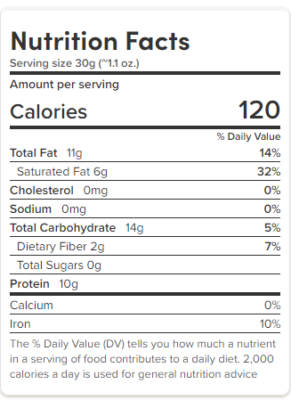 Allergen Information: Shares equipment with peanuts, tree nuts, wheat, milk, soy, eggs, & sesame.