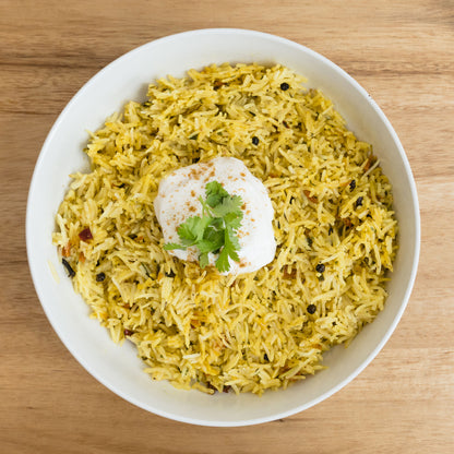 we've packed everything you need into this package to make a1-pot mild, vegetarian biryani. All you need to add is water and heat. Rigorously tested by our cooks and our families we know that our Veggie Biryani will put some warmth in your belly without putting a dent in your pocket.