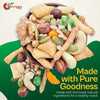 Crunchy and delectable, this mix introduces itself with roasted green peas and sesame sticks. Next, the savory flavors of hazelnuts, walnuts, and blanched peanuts join the fray. The experience is enhanced by a rich smattering of raw sunflower and pumpkin seeds. Finally, a glorious aftertaste emerges, fueled by the delicious combination of cashews and chili bits.