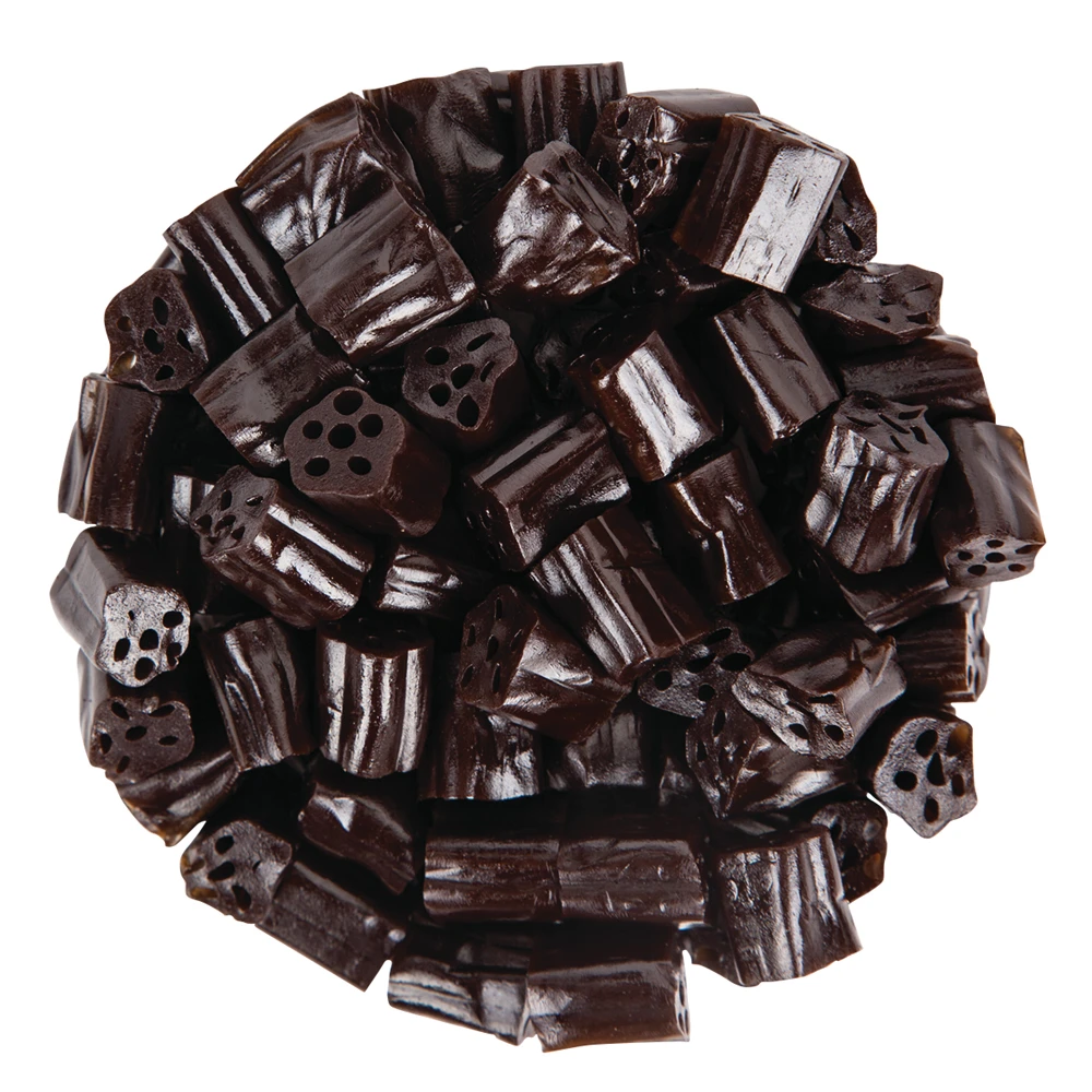 Classic black licorice bites from NY Spice Shop are just like you remember them — soft and chewy. With unmistakable licorice flavor and aroma, NY Spice Shop licorice has a loyal following. Unwrapped licorice bites are perfect for creating store-branded bags, adding to a licorice mix, or offering in self-serve scoop bins.