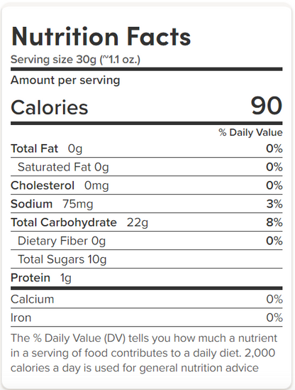 Allergen Information: Shares equipment with peanuts, tree nuts, wheat, milk, soy, eggs, & sesame.
