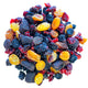 Ingredients: Flame Raisins, (Raisins, Sunflower Oil 0.5%), Golden Raisins, Dried Cranberries, (Cranberries, Sunflower Oil, Sugar) Dried Cranberries, Raspberry Flavored, Natural Flavored, Elderberry Juice, Dried Blueberries, Dried Sour Cherries, Red Tart Cherries, Dried Strawberries, Apple Juice Concentrate, Concentrated Strawberry Juice, Natural Flavor