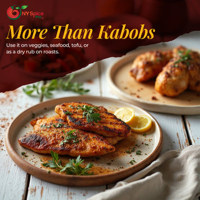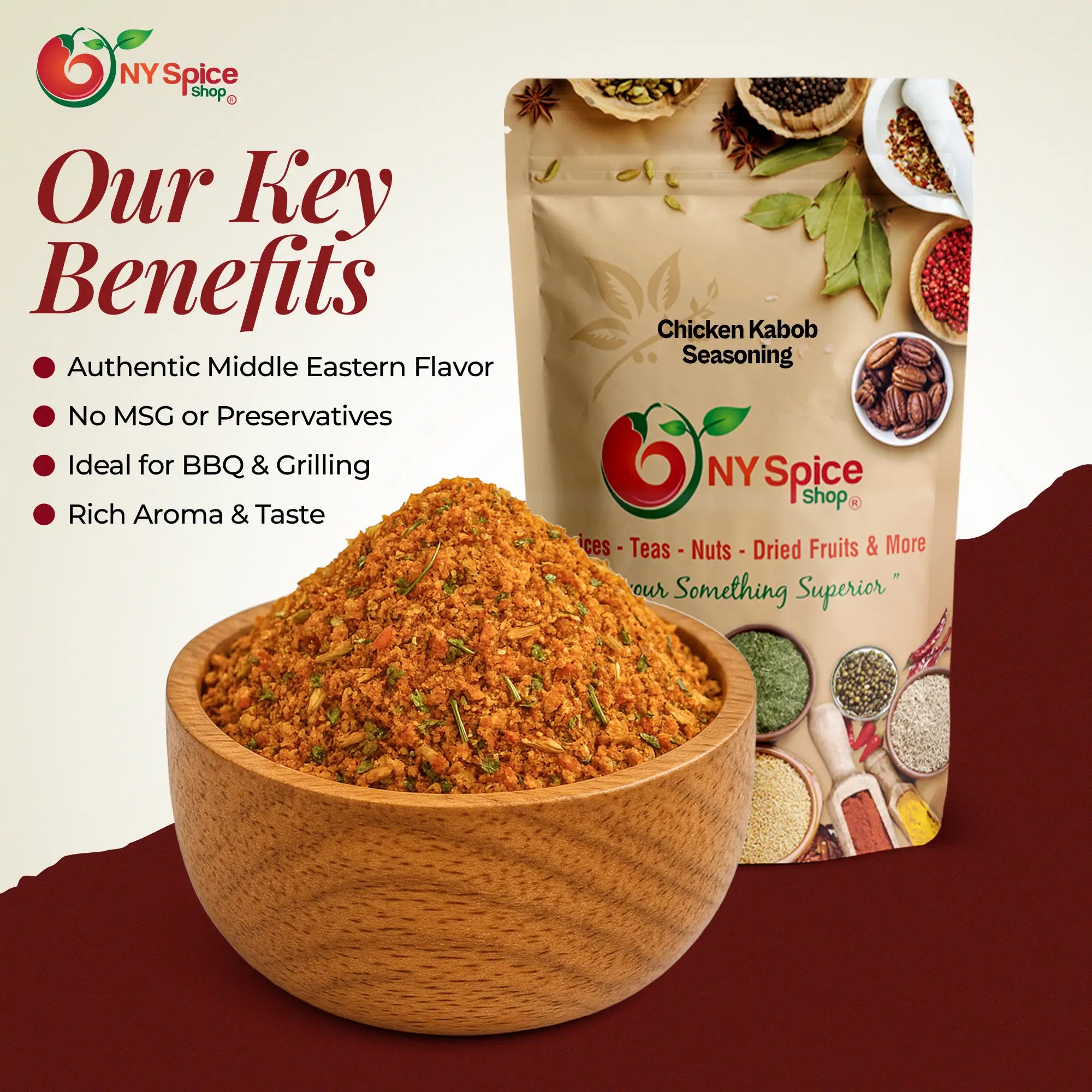 An exciting blend for all your chicken kabob needs, our delicious seasoning is key to bringing this classic Middle Eastern meal to life. Charmingly brown with a mouthwatering fragrance, this mix combines paprika, onion, and various choice spices for a taste designed to embrace and enhance your chicken kabobs.