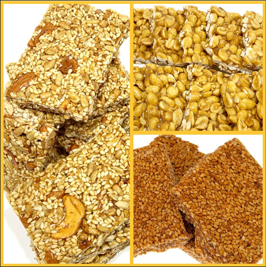 Enjoy the lovely crunch of our Crunch Bars. Densely packed with toasted delicious peanuts, sesame seeds, honey & nuts these are some of our favorite and most addictive snacks.
