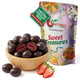 A classic rarely goes out of style, and dark chocolate-covered strawberries are one such dessert: as classic as Frank Sinatra and black patent leather. Unlike the aforementioned classic examples, these are seriously delicious. Savor whole dried strawberries lovingly covered in semisweet dark chocolate. Pure. Classic. Perfection.