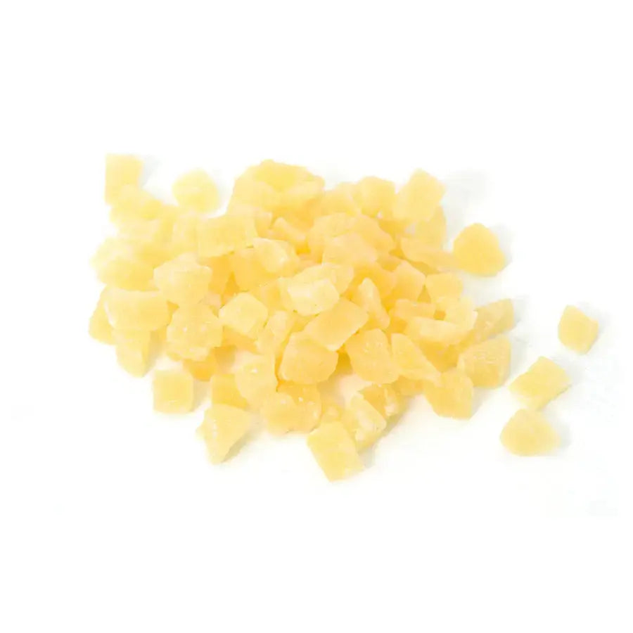 Sweet, tangy, and crisp, dried pineapple chunks make the perfect topping for ice cream, frozen yogurt, or cereal. Customers will also love adding these sweet little morsels to their homemade trail mixes. Their bright yellow color will stand out in toppings bars and bulk displays.