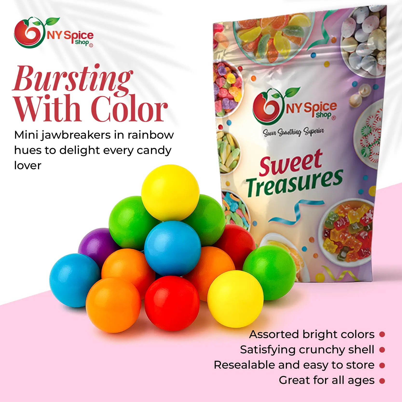 Their small size makes them ideal for snacking on the go, sharing at parties, or using as a decorative topping for desserts. Whether you’re filling candy jars, creating vibrant party favors, or simply indulging in a nostalgic treat, these mini jawbreakers are the perfect addition.