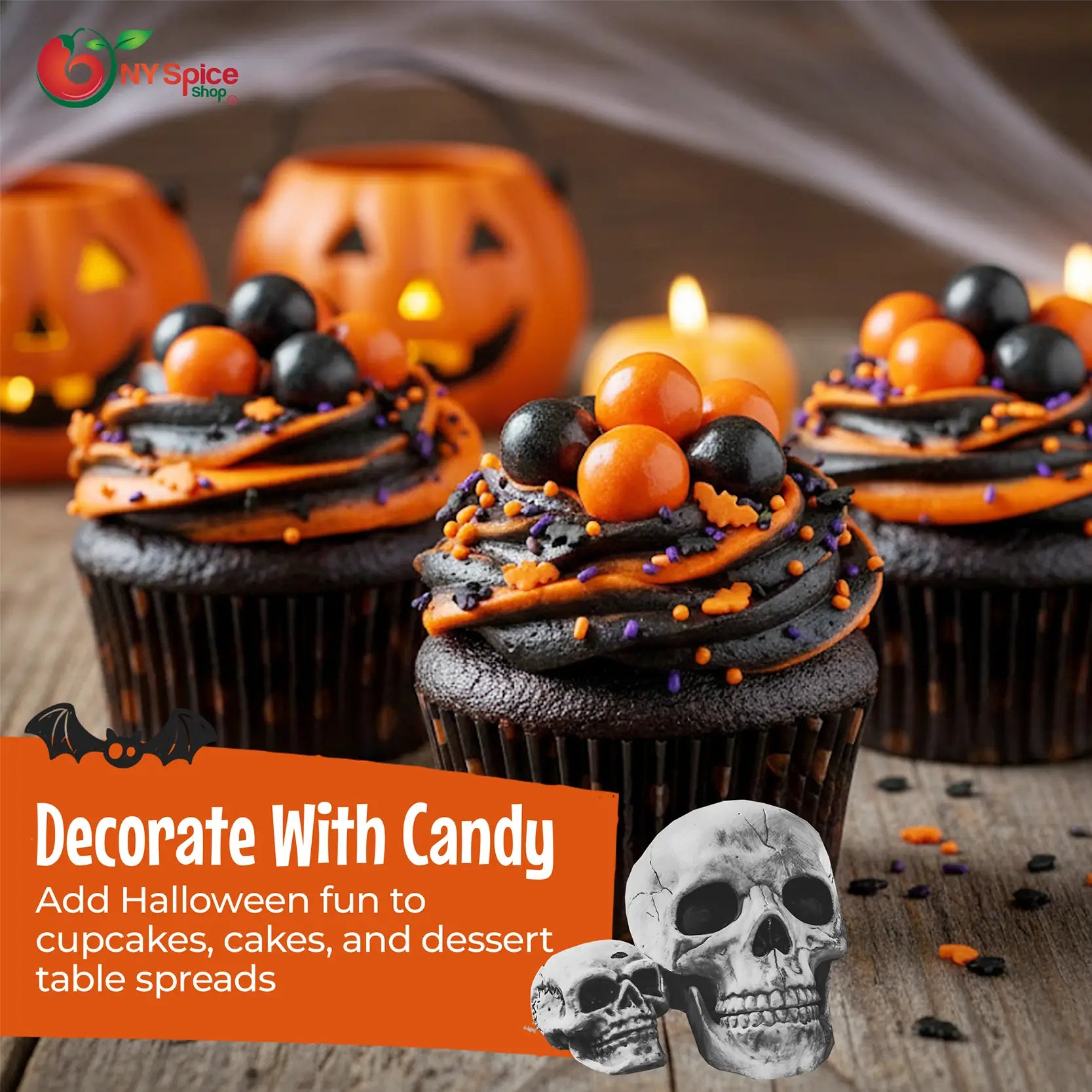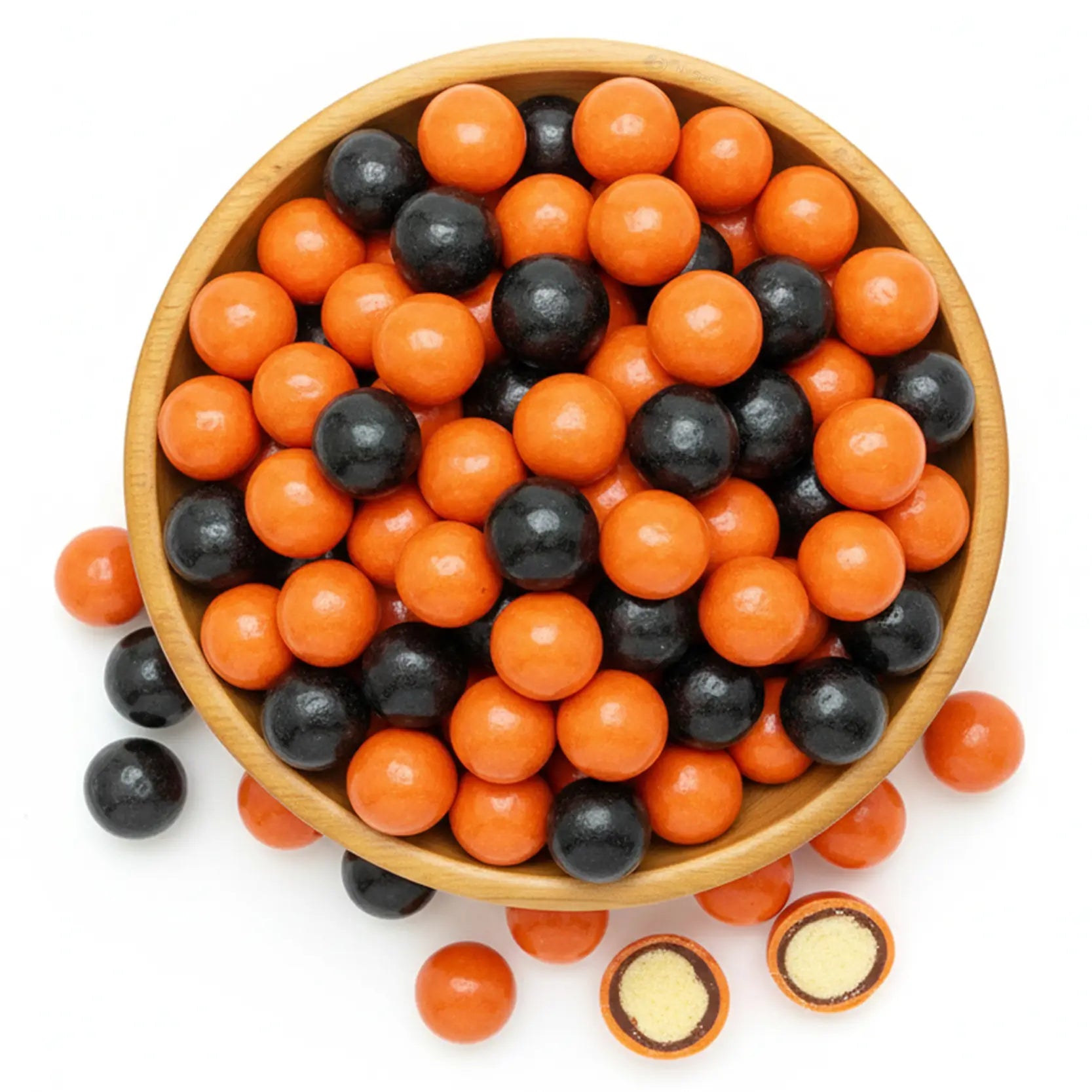 The rich, bittersweet flavor of dark chocolate meets the light, malty center for a delicious contrast. Each bite is a perfect balance of deep cocoa notes and airy, crisp malt. The orange and black candy coating adds a touch of fun and festivity to the experience, making these treats not only tasty but visually striking.