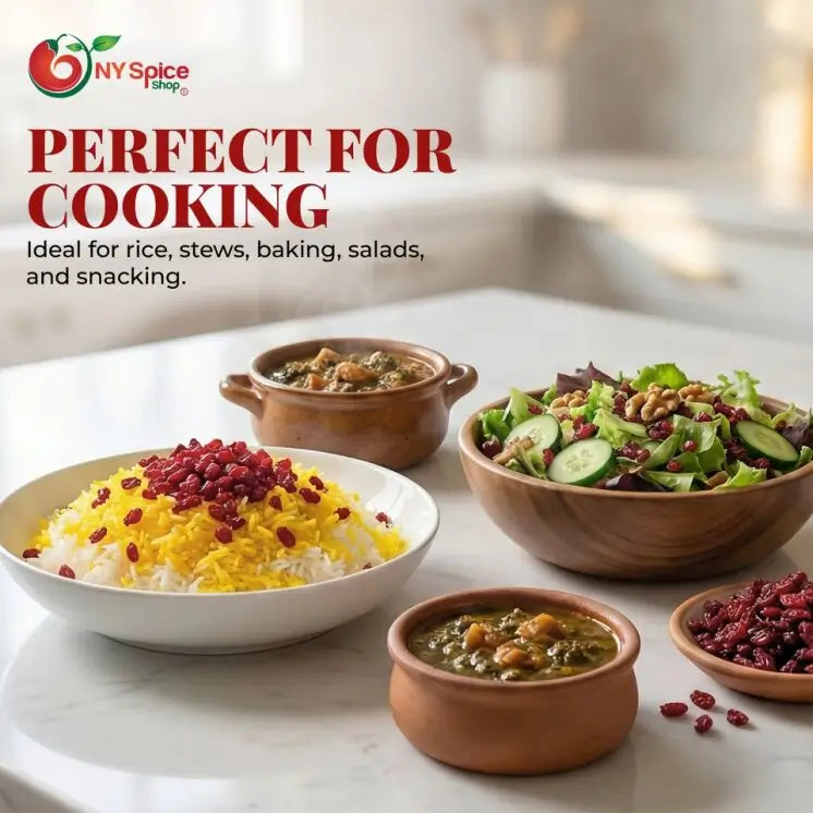 Dried barberries also have a delicious tart flavor that complements savory and sweet recipes alike. They are mostly enjoyed in rice dishes, stews or casseroles.