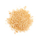- Coarse white salt grains blended with golden flecks of dried roasted garlic powder